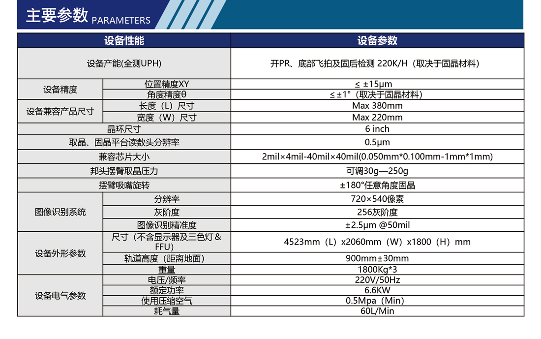 固晶精密(XY):±15um